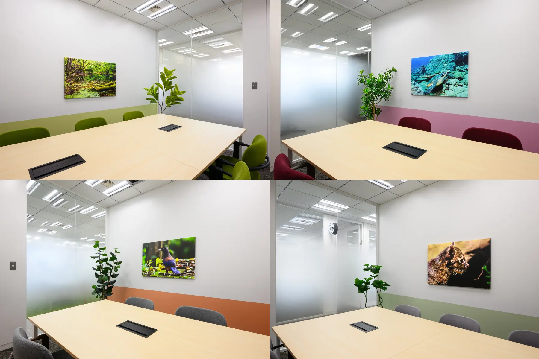 機密性の高い打ち合わせに対応した会議室も完備。デザインのテーマは、知床や白神山地など日本にある世界自然遺産 写真:Kudo Original Photo