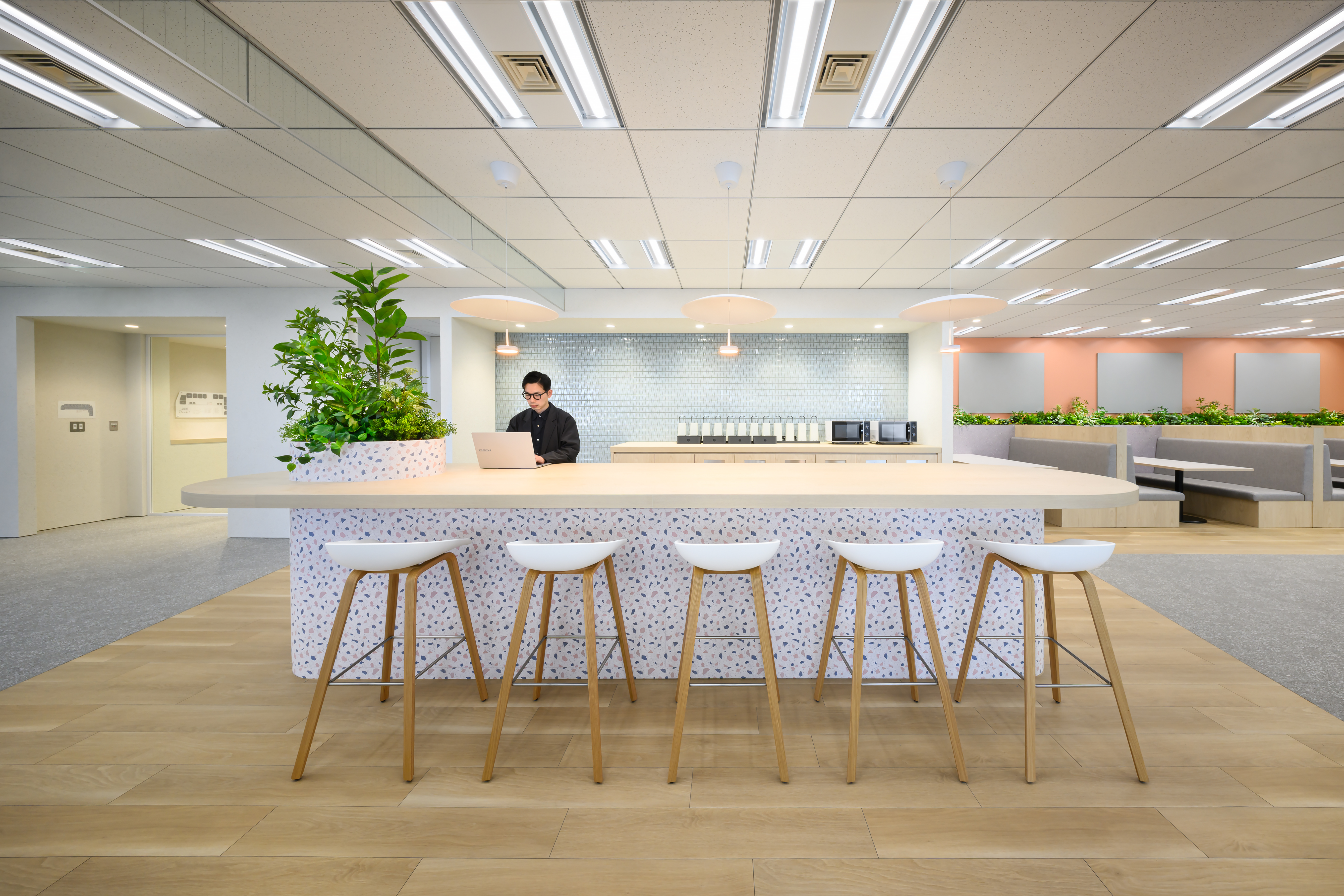 今、各支社室には冷蔵庫があって、終業時間になると冷やしておいたビールを出して一杯やってから帰る人もいるので、共用スペースにバーカウンターをつくったら活用する人は多いかもしれません。支社同士の新たな交流のきっかけにもなりそうですよね。