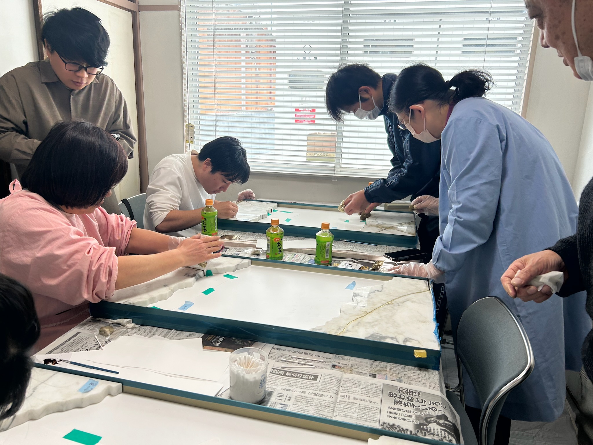 そこで社内で相談をしたら、「知り合いに金継ぎ職人の方がいるよ」と紹介してもらい、その方に相談しました。陶器だけでなく、ガラスや木のお椀も継げる技術を持った方なのですが、大理石を継ぐのは初めてということで事前にサンプルをお送りするなど、いろいろ準備をして、ワークショップを開くことになりました。当日は30人を超える方が参加してくれました。