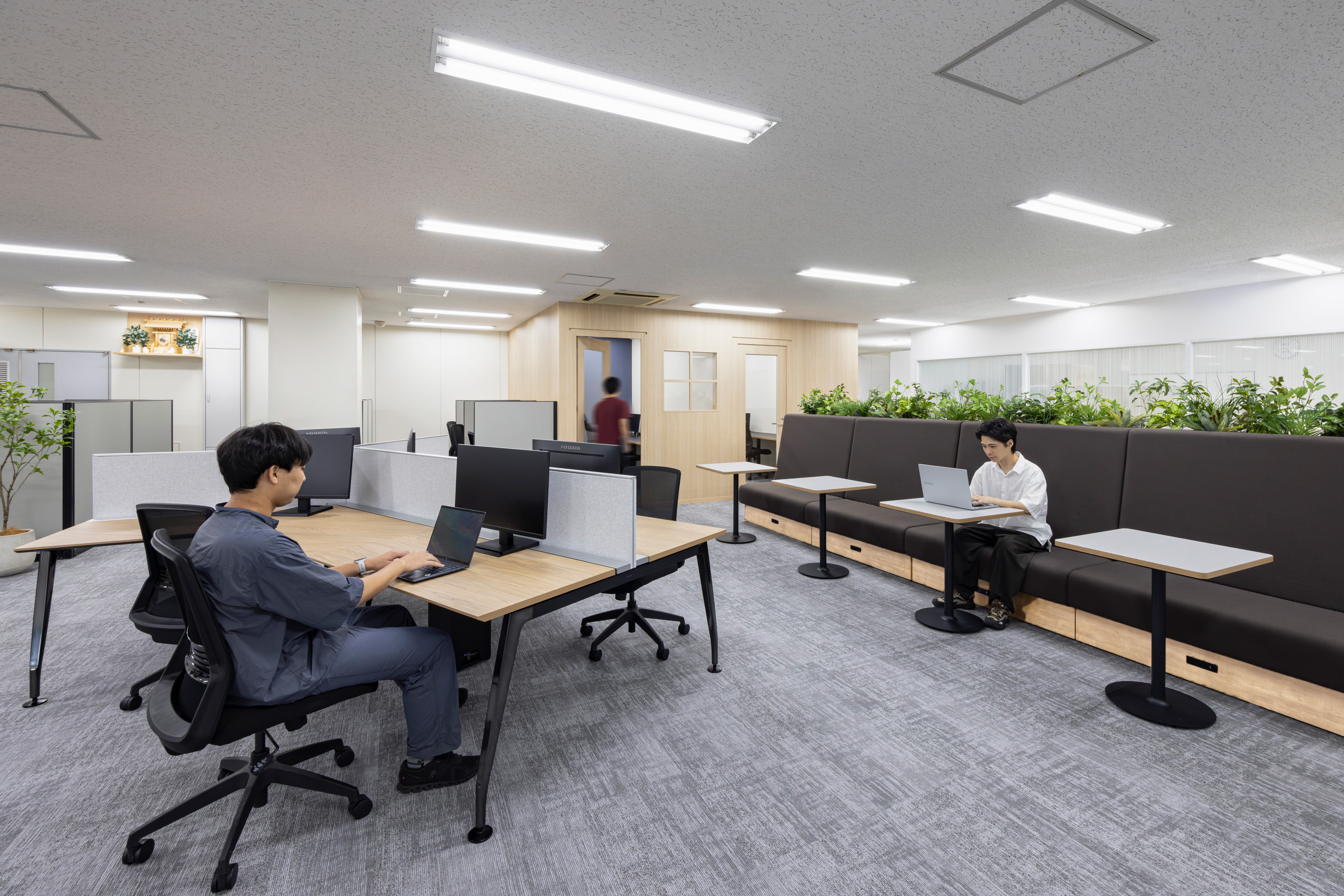 - 執務エリアのフリーアドレス化とともに、従業員一人一人が業務内容や気分に合わせて自律的に働く場所を選び、柔軟な働き方で業務の効率化や生産性向上を図れる空間を目指した。