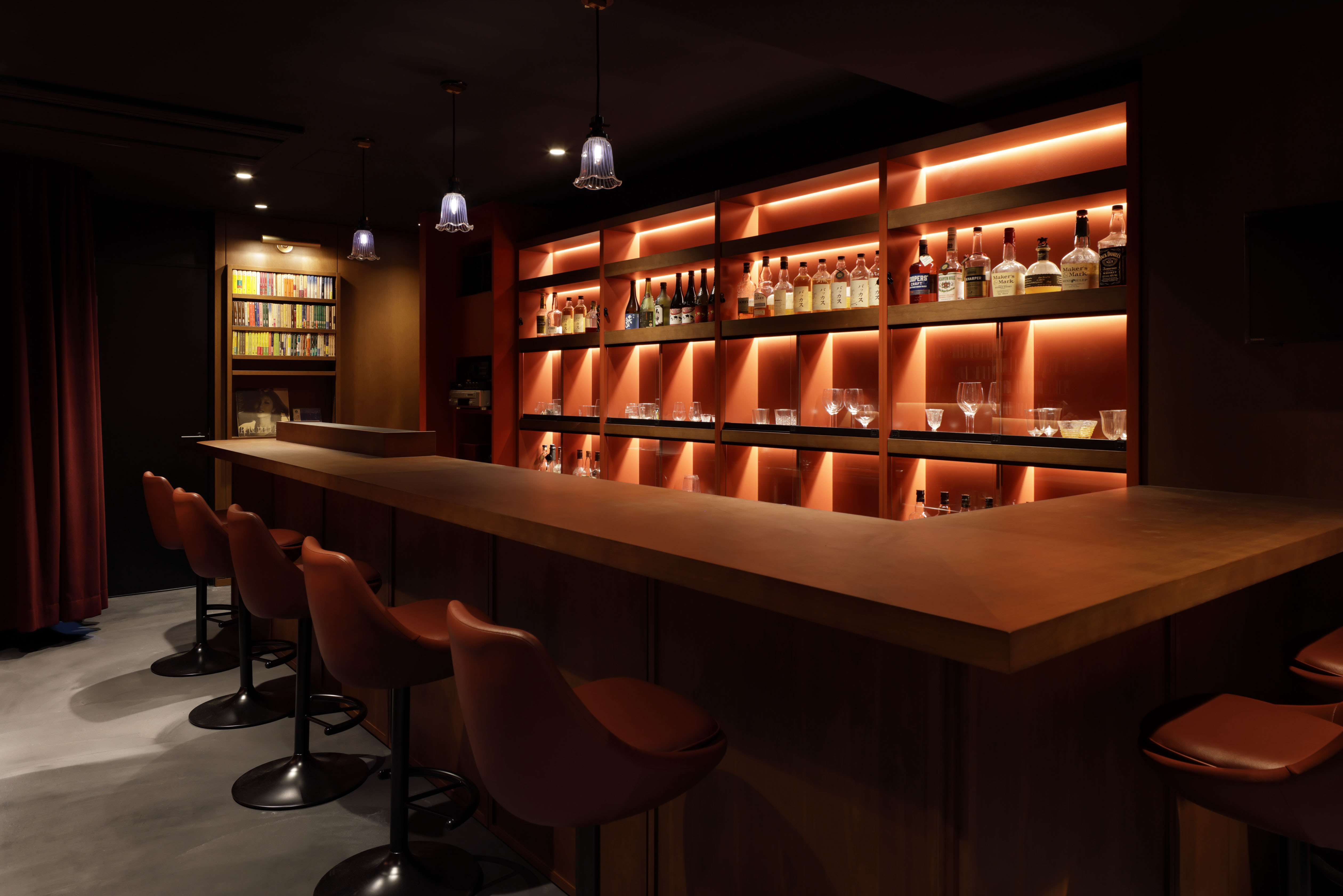 旧店舗のサインや建具などの佇まいを可能な限り踏襲したいというオーナー様の希望を反映させながら、収納はより大容量に、動線はよりスムーズに、ミュージックバーらしく音にも配慮。慣れ親しんだ雰囲気をそのままにすっきりとした印象に整えた。