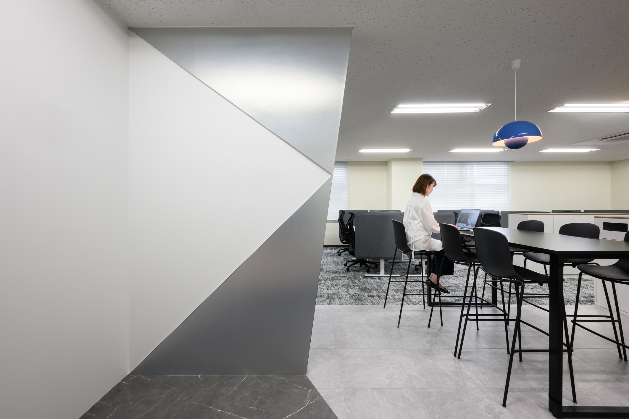 クライアント様の事業特性上、精度やスピードが重要であり、集中して働ける環境を整えることで企業のプロフェッショナルな姿勢を空間で表現した。