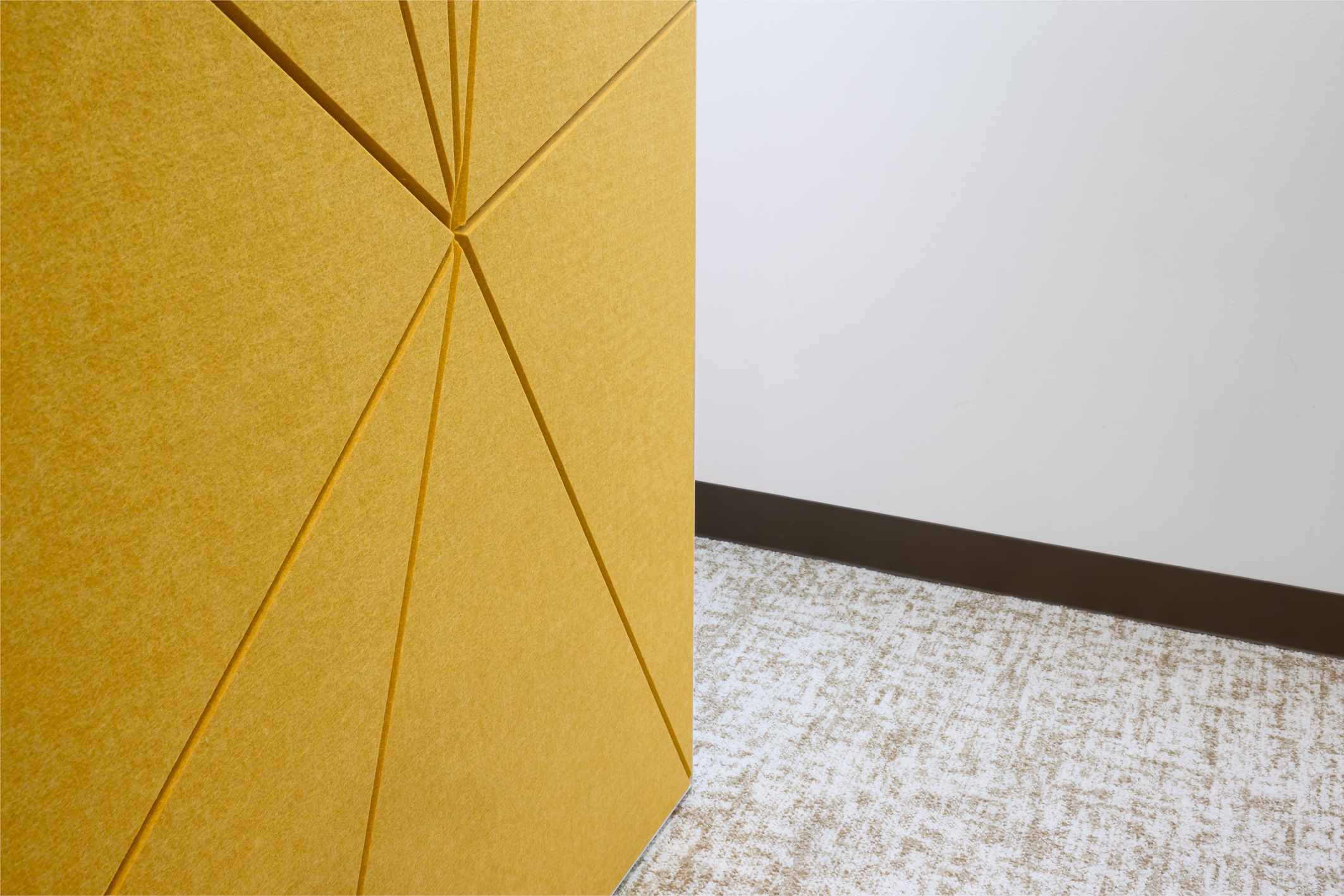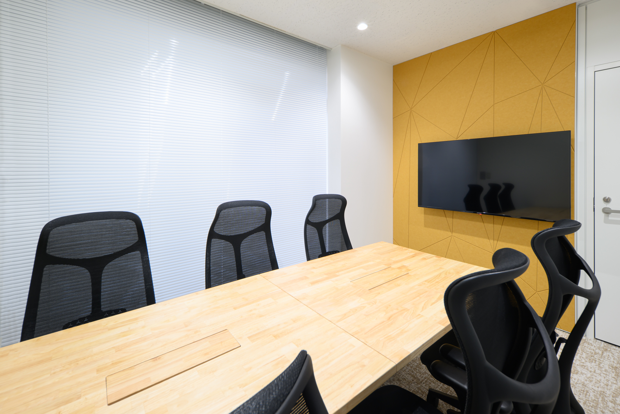 壁一面の吸音パネルが空間のアクセントとなっている。