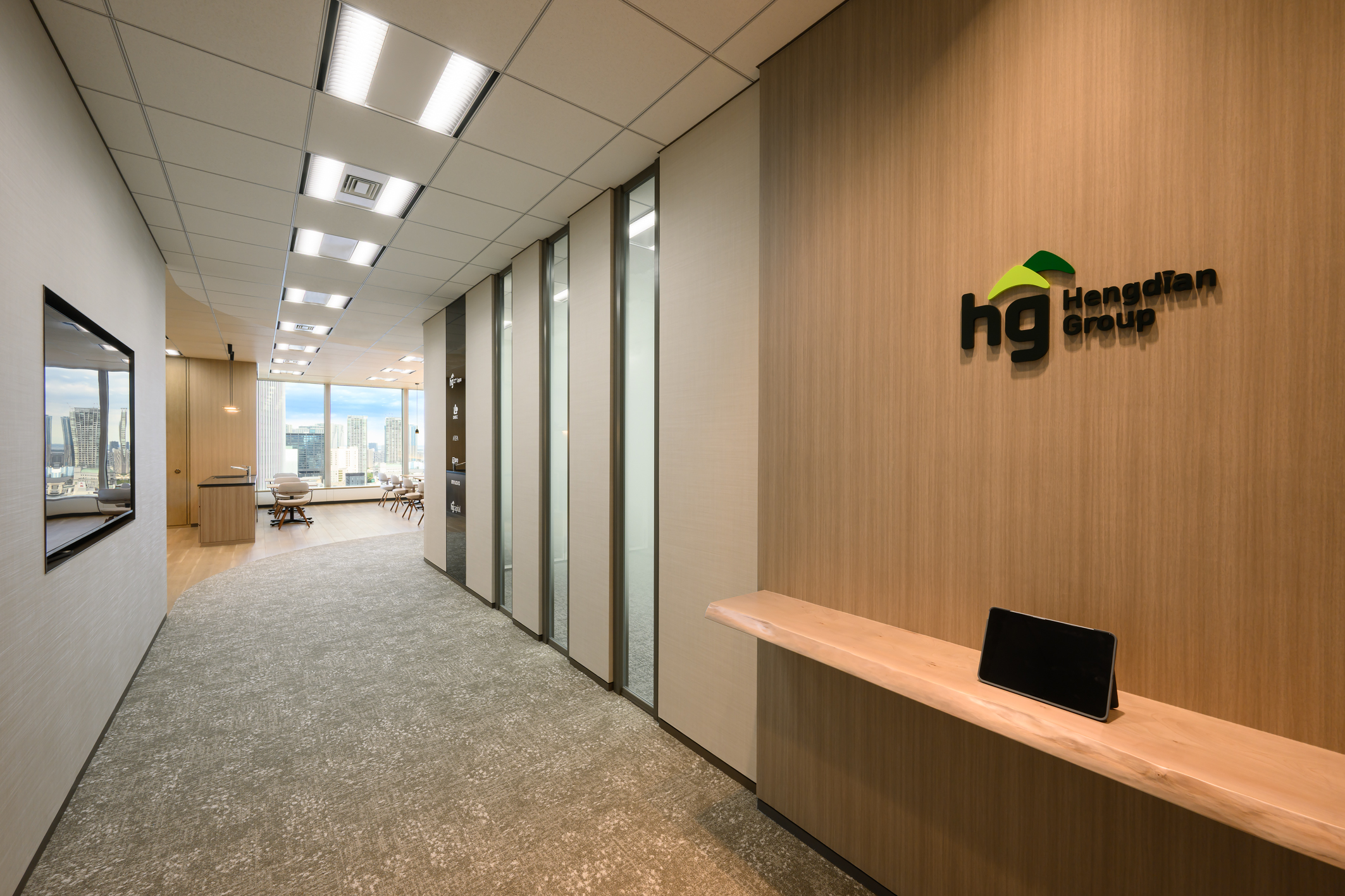 株式会社横店グループジャパン様はグローバルに活躍する横店グループの日本本社であり、オフィスにおいても企業としての「信頼感」を表現することが重要であった。
