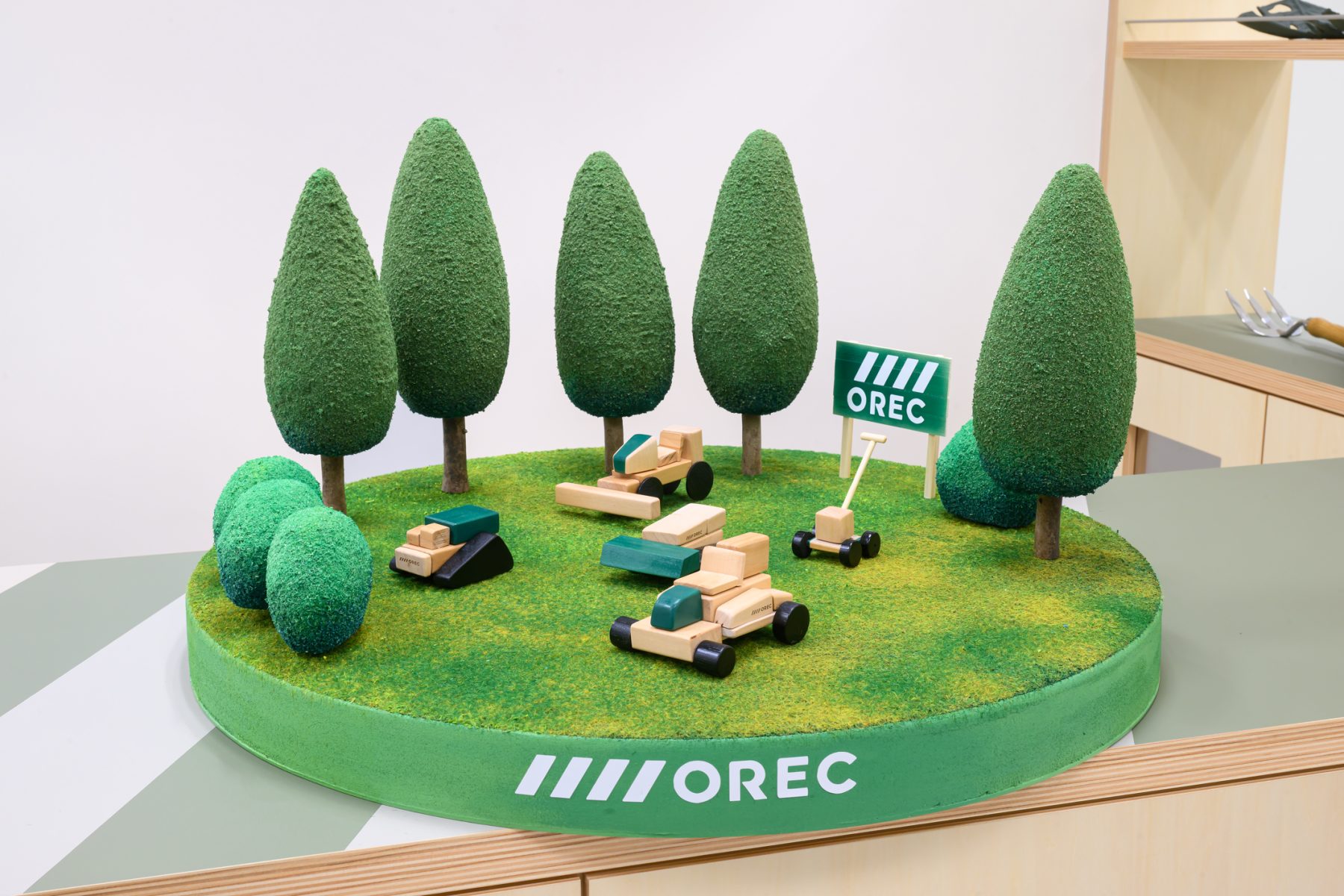 ③受付エリアのディスプレイは、空間の一貫性を高めるだけでなく、来訪者との会話のきっかけとなるよう計画した。造作棚には自然素材のアクセサリーの中に農具をモチーフにした小物を配し、カウンター上には天板の斜線柄に沿って、今回のプロジェクト用に製作したオーレックのプロダクトのミニチュアを展示。事業や世界観を象徴する遊び心のあるアイテムが来訪者の興味を惹きつけ、そこから自然なコミュニケーションが生まれることを目指した。 - WEBサイト