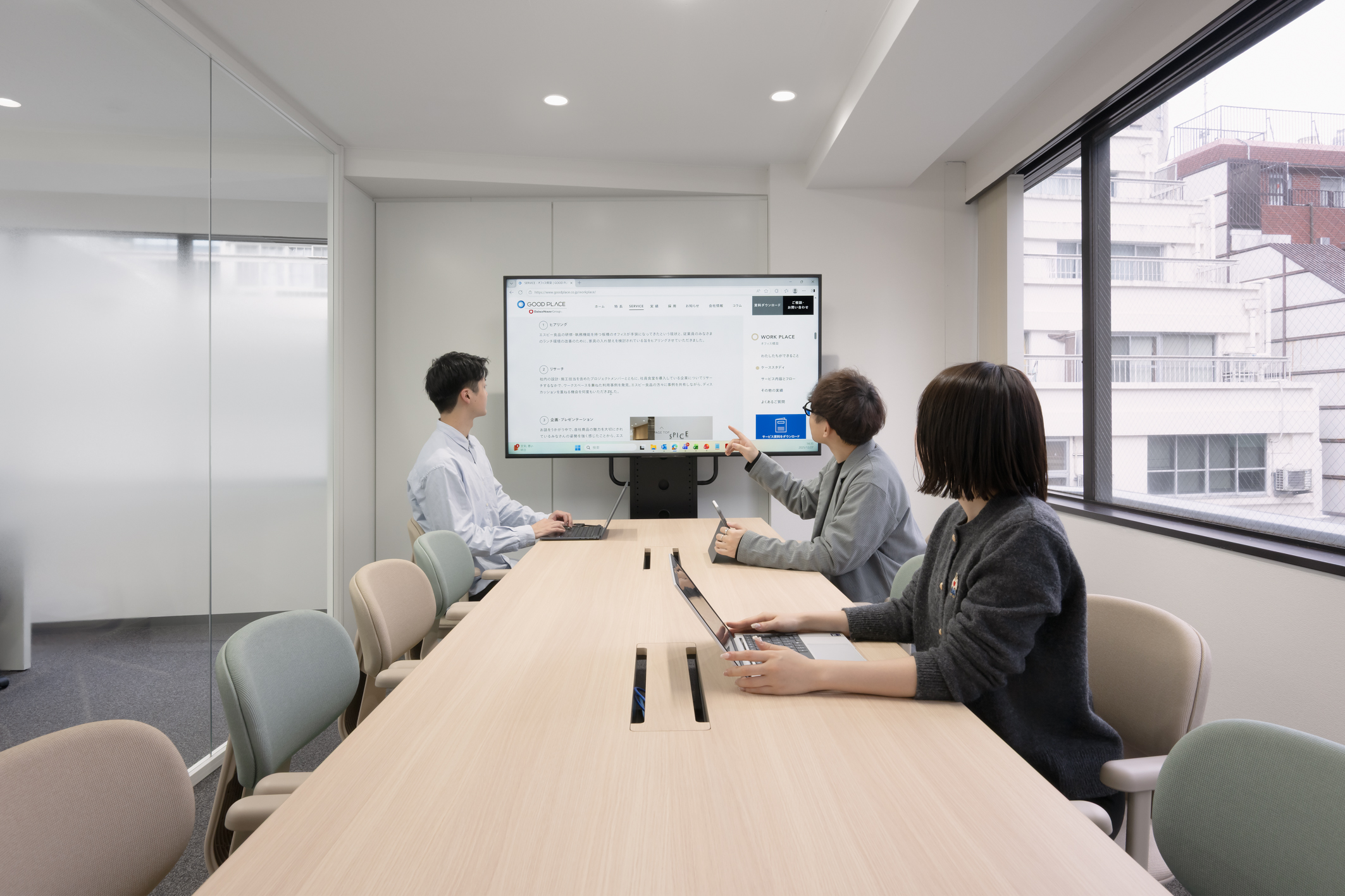 - 従業員数の増加に伴うオフィス移転において、席数や会議室の不足解消に加え、企業イメージの向上や働きやすさの追求が求められた。これらの要望を反映した提案を評価いただき、本プロジェクトをお任せいただいた。